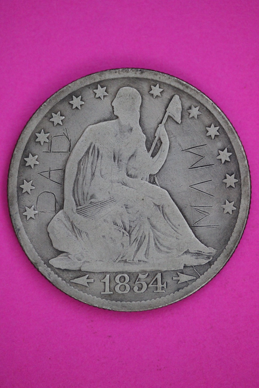 1854 O Seated Liberty Silver Half Dollar Graffitti Authentic Genuine Coin 2853