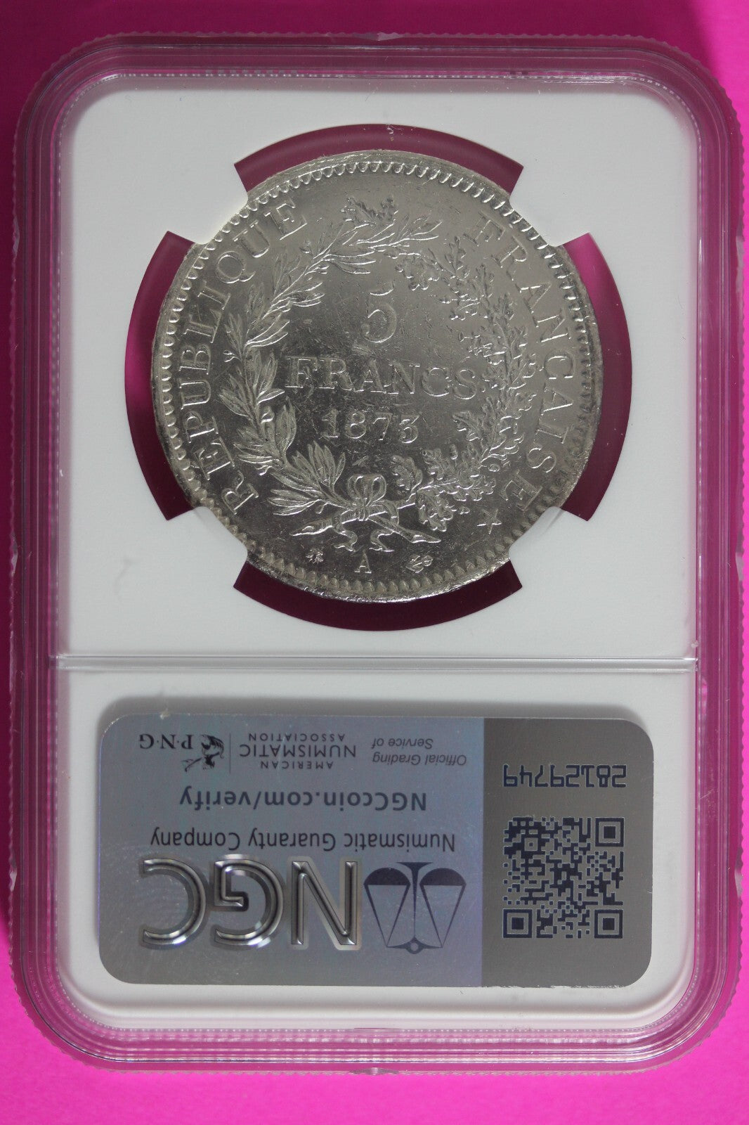 1875 A UNC Details France 5 Francs Silver Coin NGC Cleaned Certified Slab 620