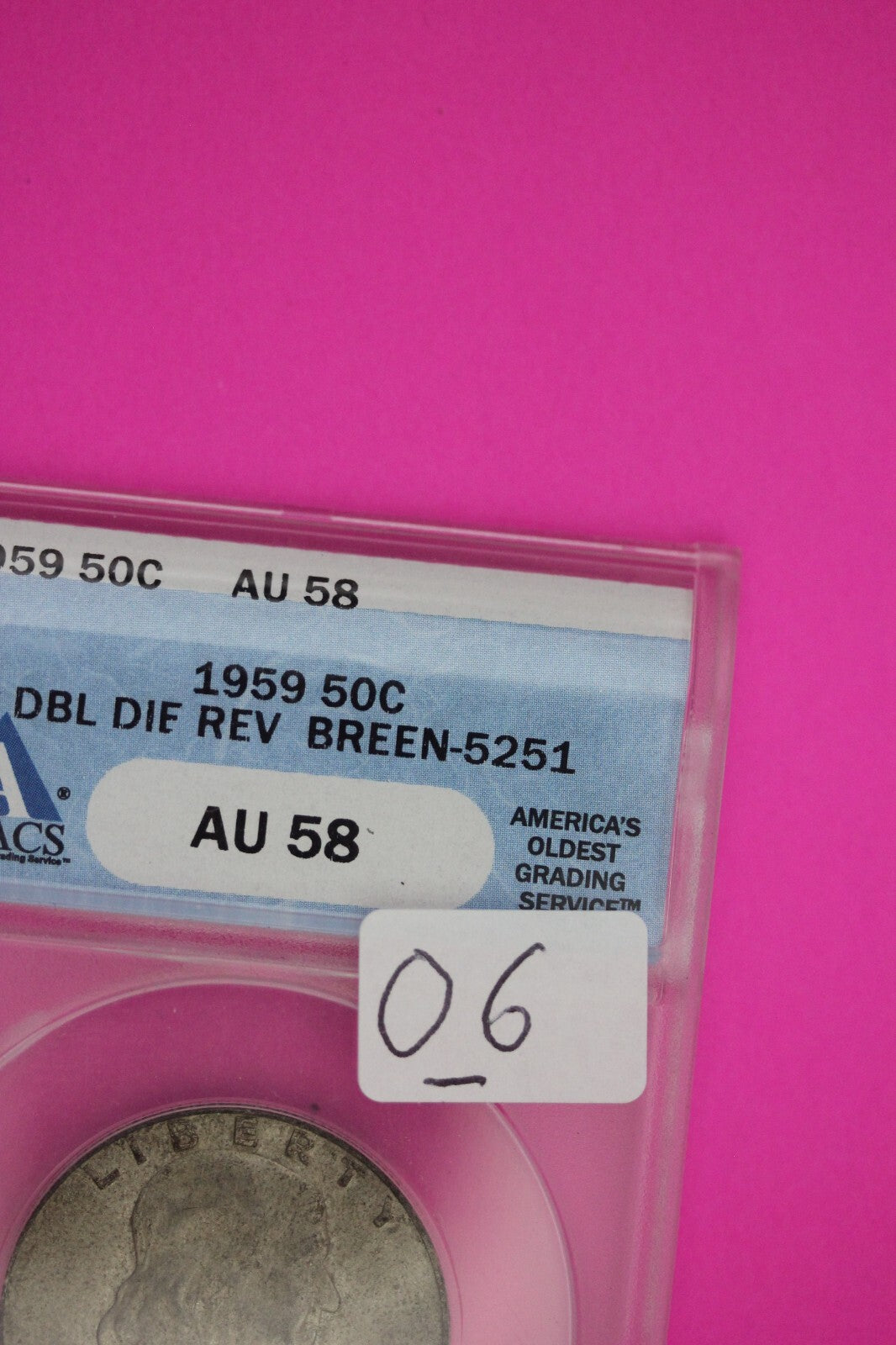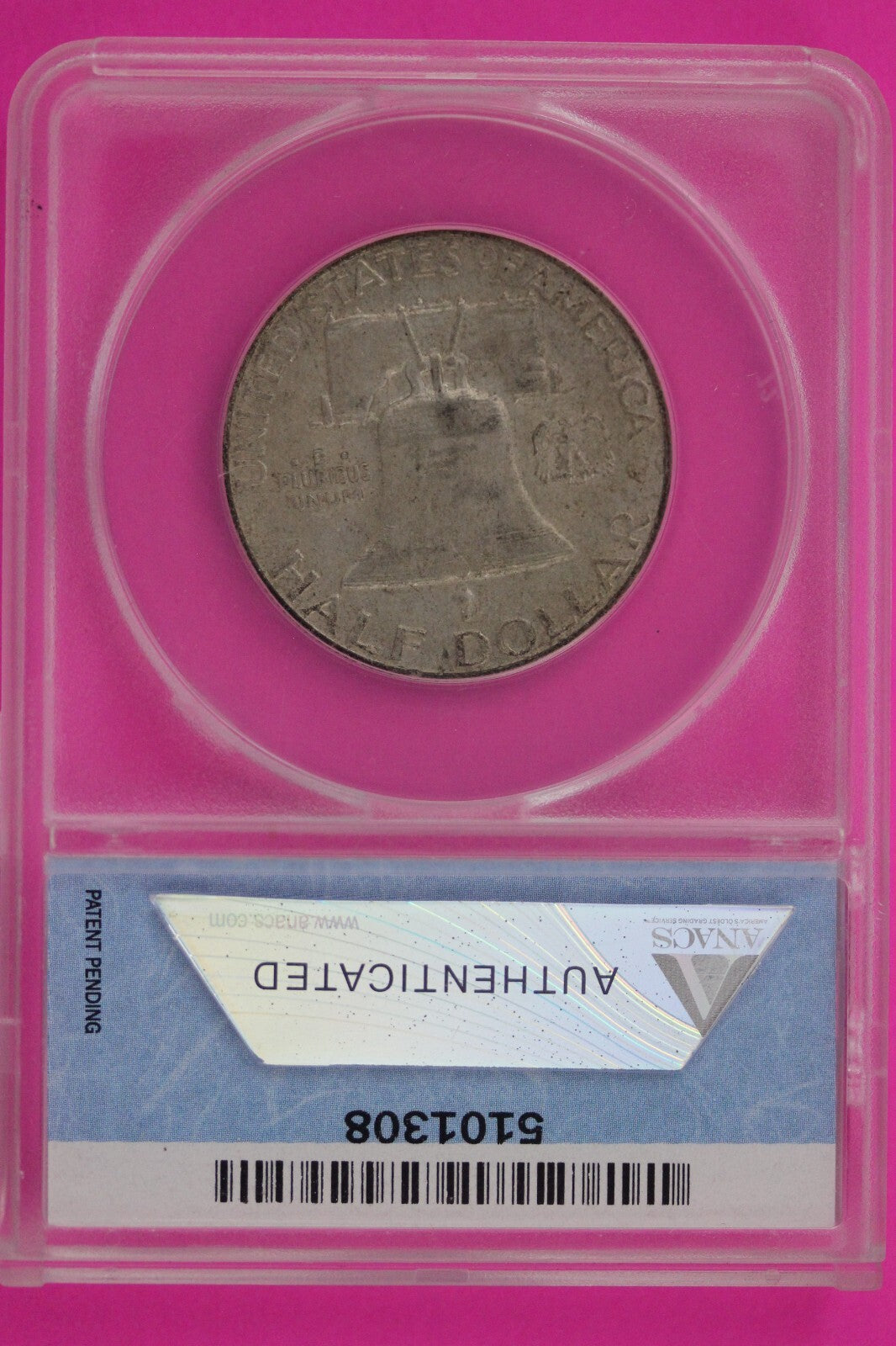 1958 P AU 58 DDR Ben Franklin Silver Half Dollar ANACS Double Die Reverse 06