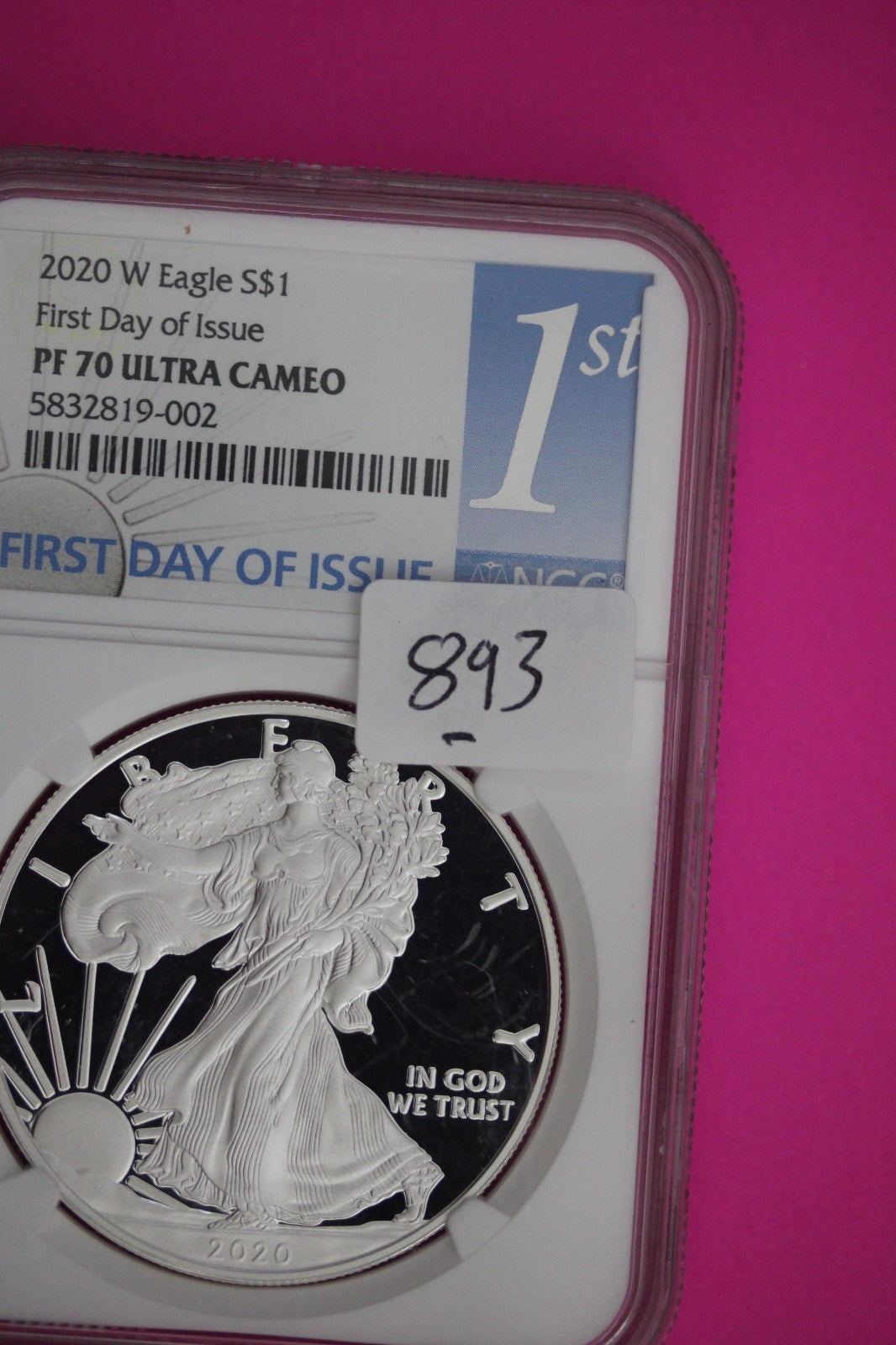 2020 W PF 70 Silver Eagle First Day Of Issue Proof Ultra Cameo 1 OZ NGC Slab 893