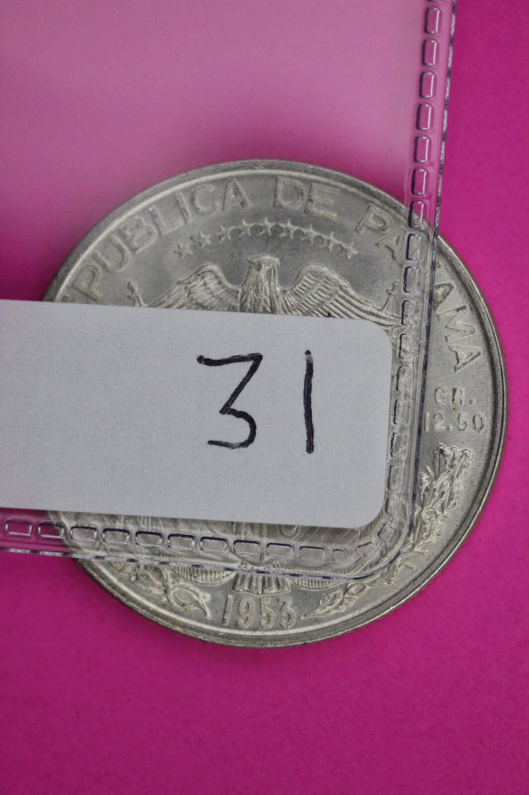 Gem Brilliant Uncirculated 1953 Panama Half Balboa Silver Low Mintage Coin 31