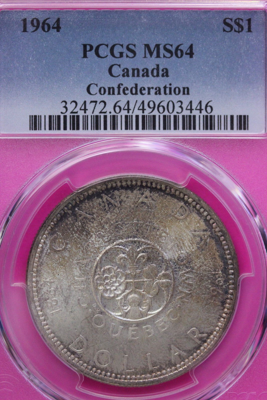 Golden Blue Toned 1964 MS 64 Canada Confederation Silver Dollar PCGS Graded 732