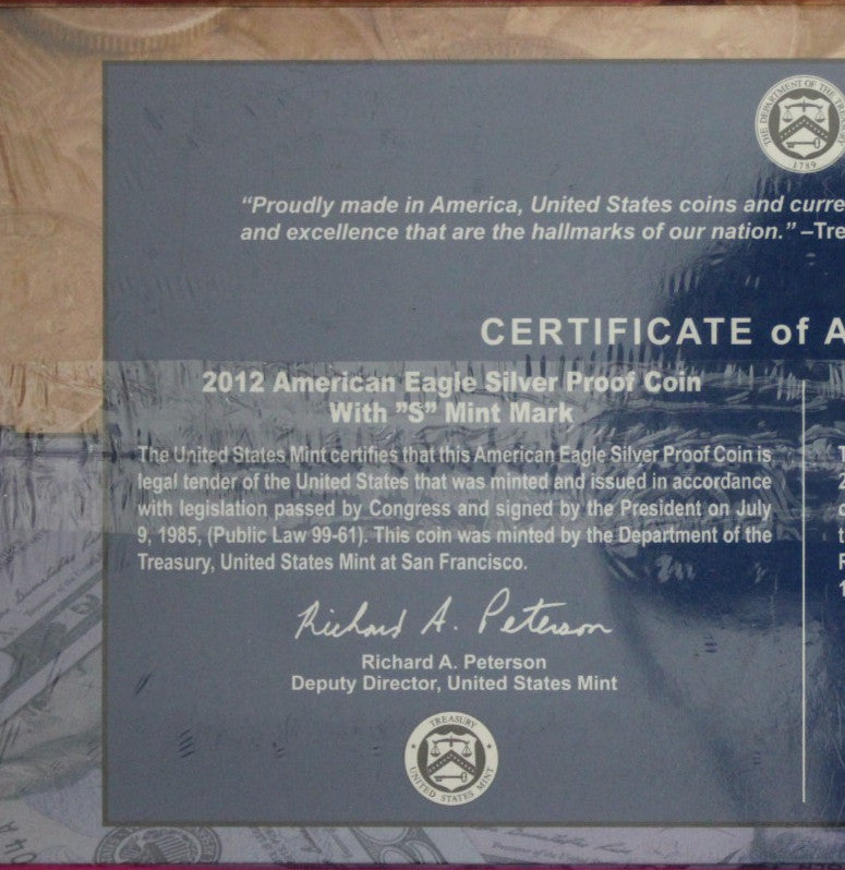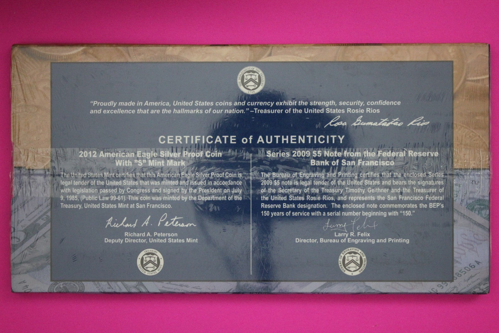 Mint Sealed 2012 Coin & Currency Set Proof 1 OZ Silver Eagle & $5 Note COA 9017