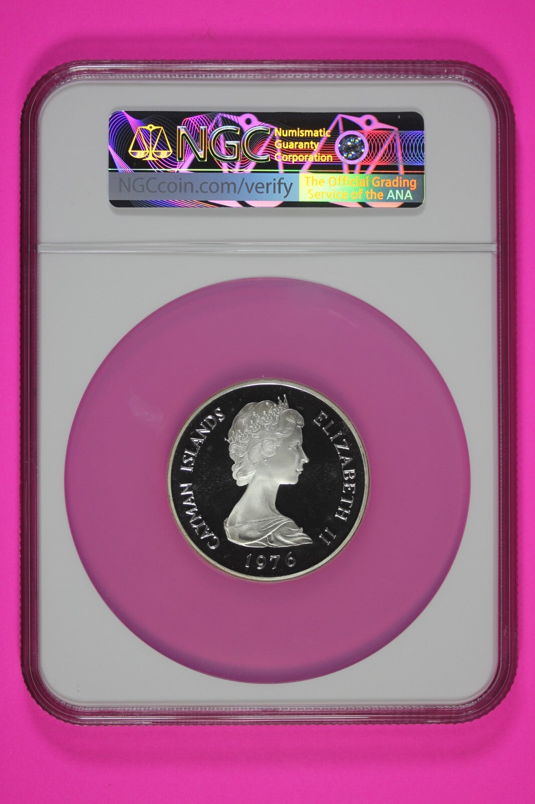 Pop 4 Only 2 Finer 1976 PF 68 Cayman Islands 50PD Five Queens Silver NGC 7037