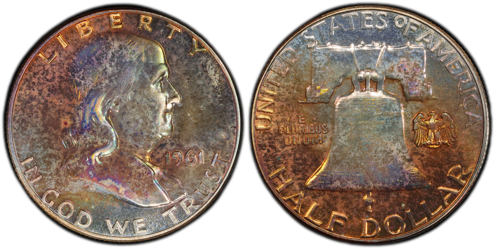 Rainbow Toned 1961 Silver PR 65 Ben Franklin Half NGC Graded Authentic Slab 164