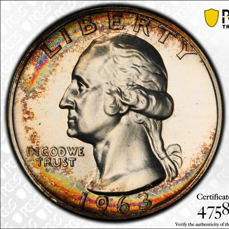 Rainbow Toned 1963 PR 66 George Washington Quarter PCGS Trueview Slab 424