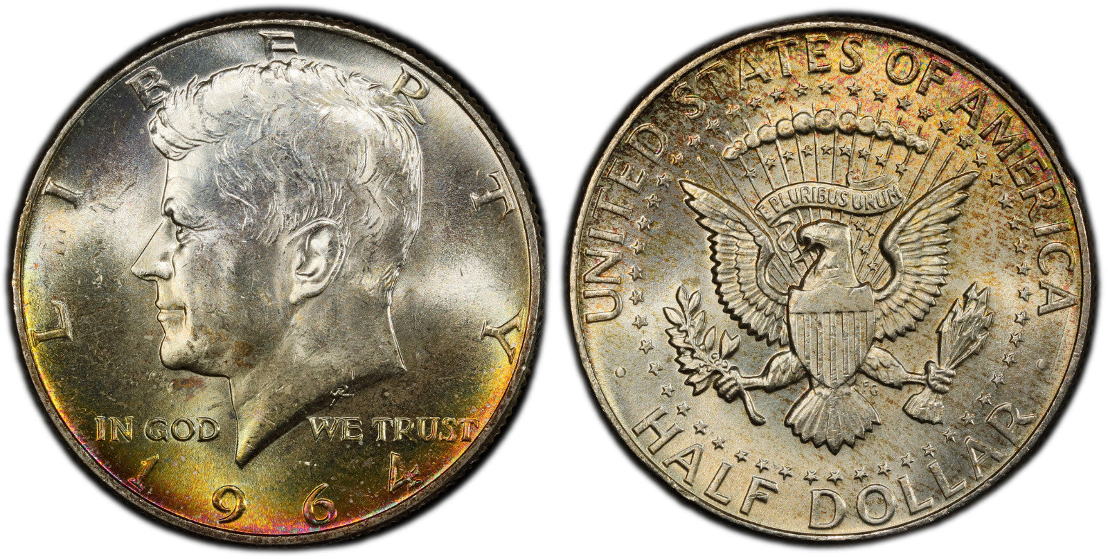 Rainbow Toned 1964 P Silver MS 64 John F Kennedy Silver Half Dollar PCGS 294
