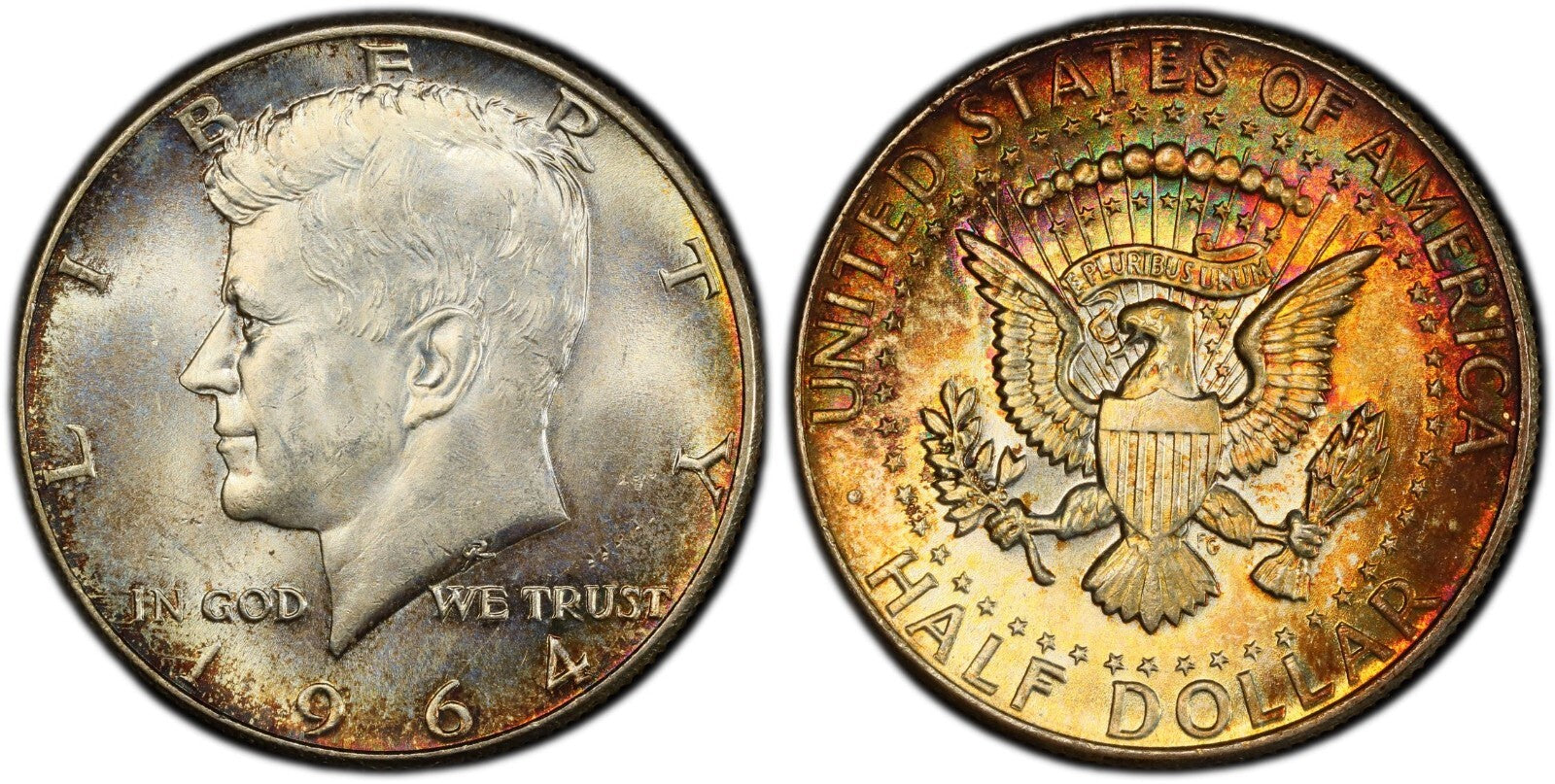 Rainbow Toned 1964 P Silver MS 65 John F Kennedy Silver Half Dollar PCGS 299