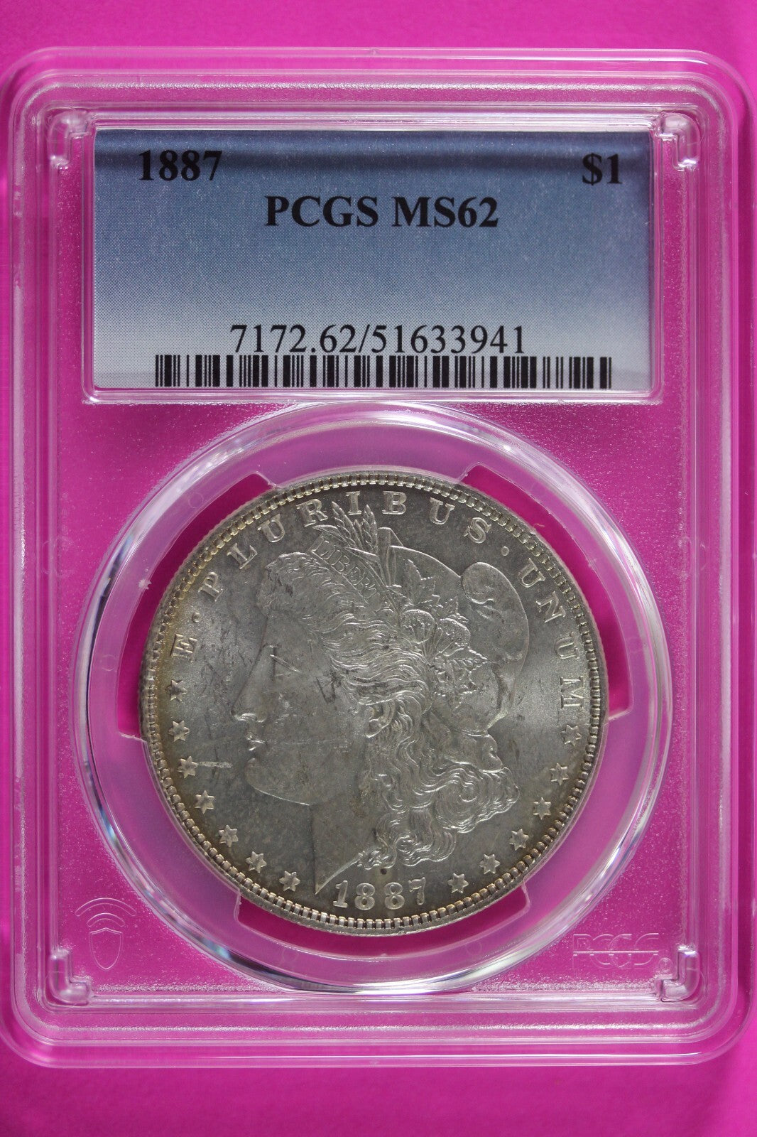Toned 1887 P MS 62 Liberty Morgan Silver Dollar PCGS Certified Graded Slab 1077