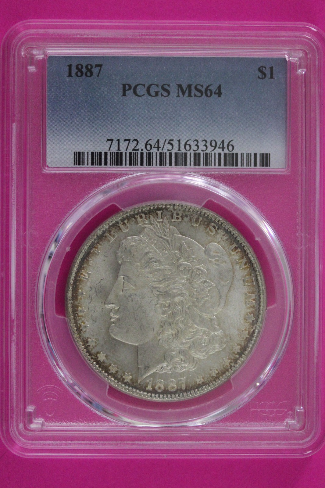 Toned 1887 P MS 64 Liberty Morgan Silver Dollar PCGS Certified Graded Slab 1082