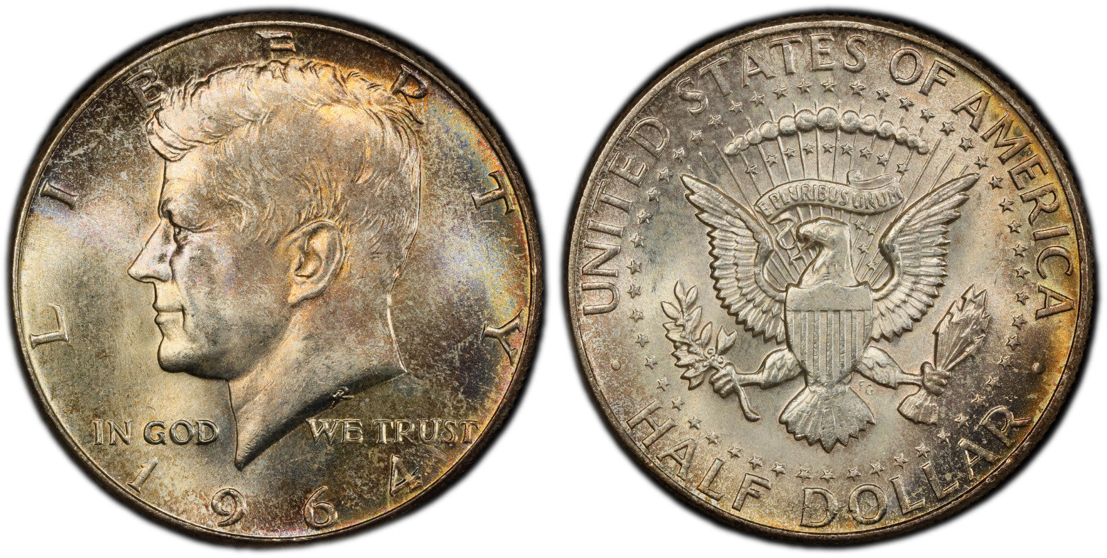 Toned 1964 P Silver MS 65 John F Kennedy Silver Half Dollar PCGS Graded 336