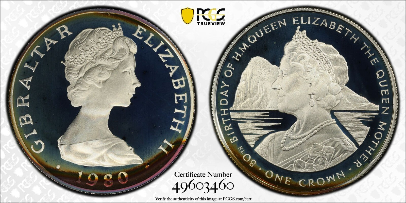 Toned 1980 PR 68 DCAM Crown Gibraltar PCGS Queen Elizabeth 80th Birthday 528