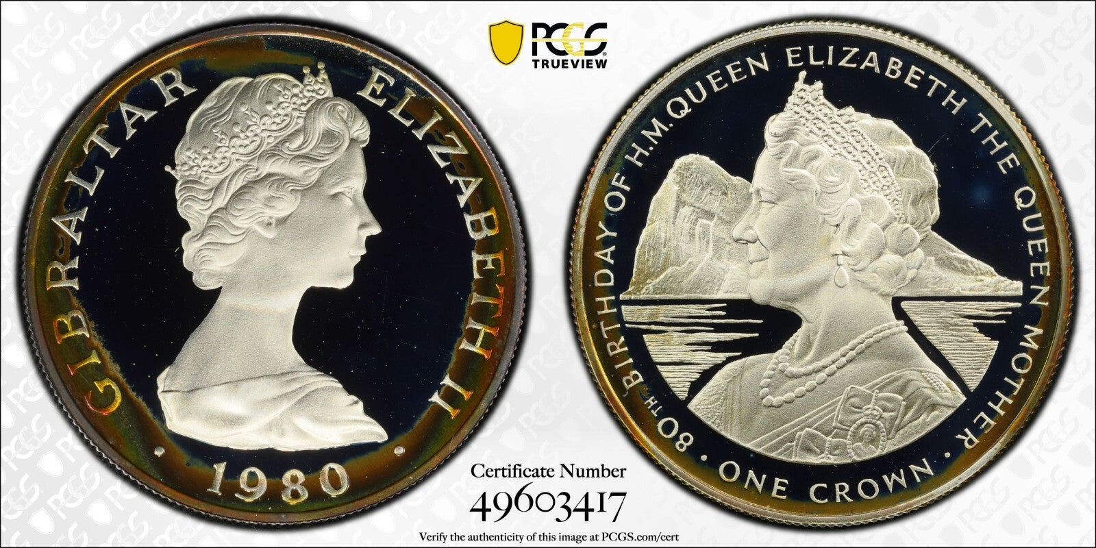 Toned 1980 PR 68 DCAM Crown Gibraltar PCGS Queen Elizabeth 80th Birthday 549