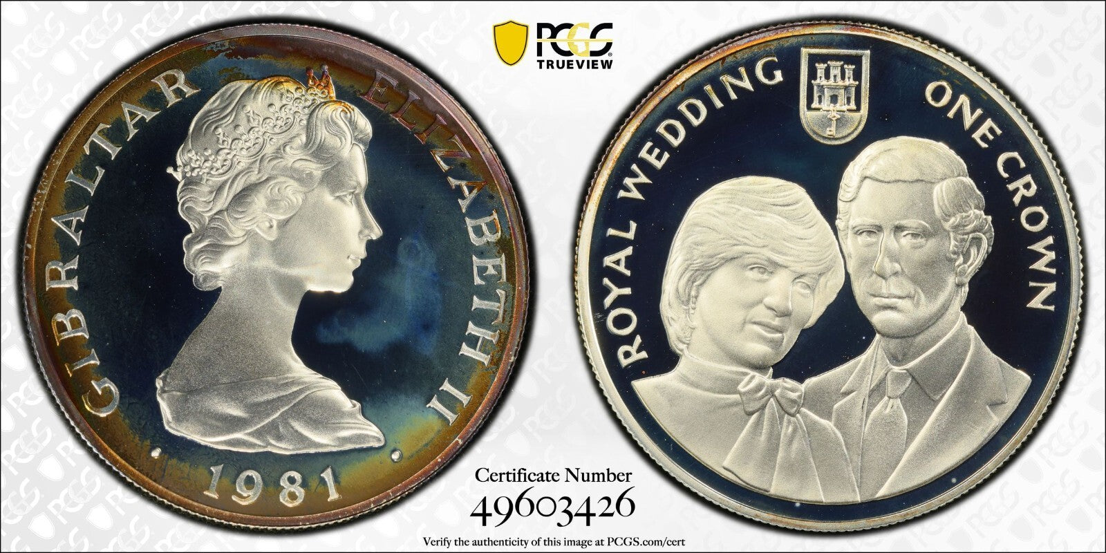 Toned 1981 PR 68 DCAM Crown Gibraltar Princess Diana Royal Wedding PCGS Slab 609
