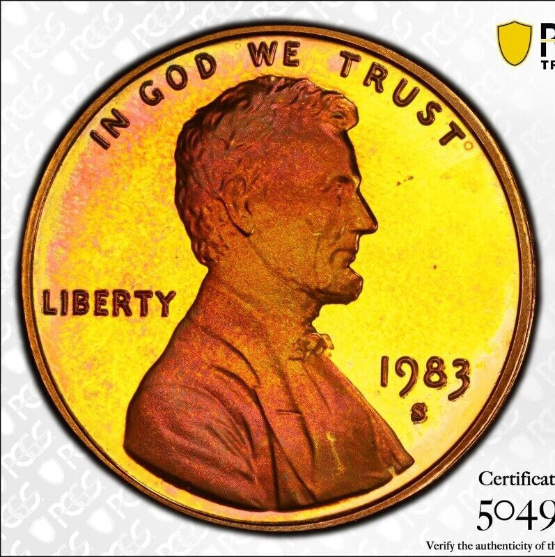 Toned 1983 S PR 69 Red DCAM Abraham Lincoln Memorial Cent PCGS Graded Slab 423