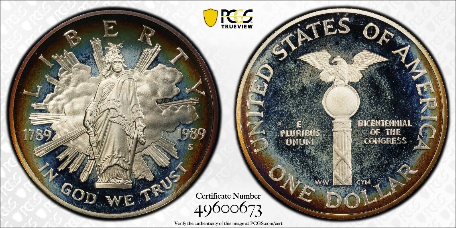 Toned 1989 S PR 67 DCAM Congress Commemorative Silver Dollar PCGS Certified 443